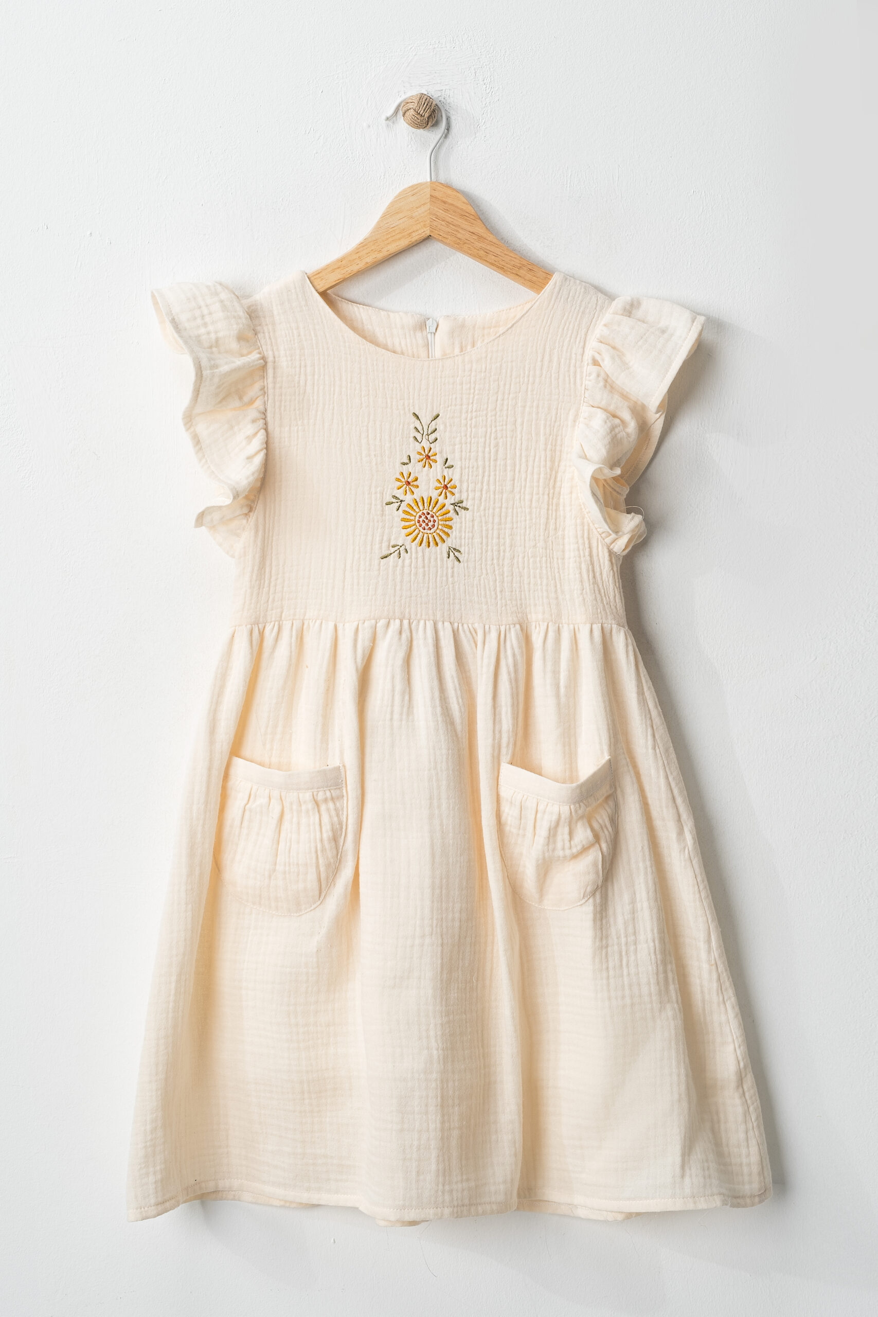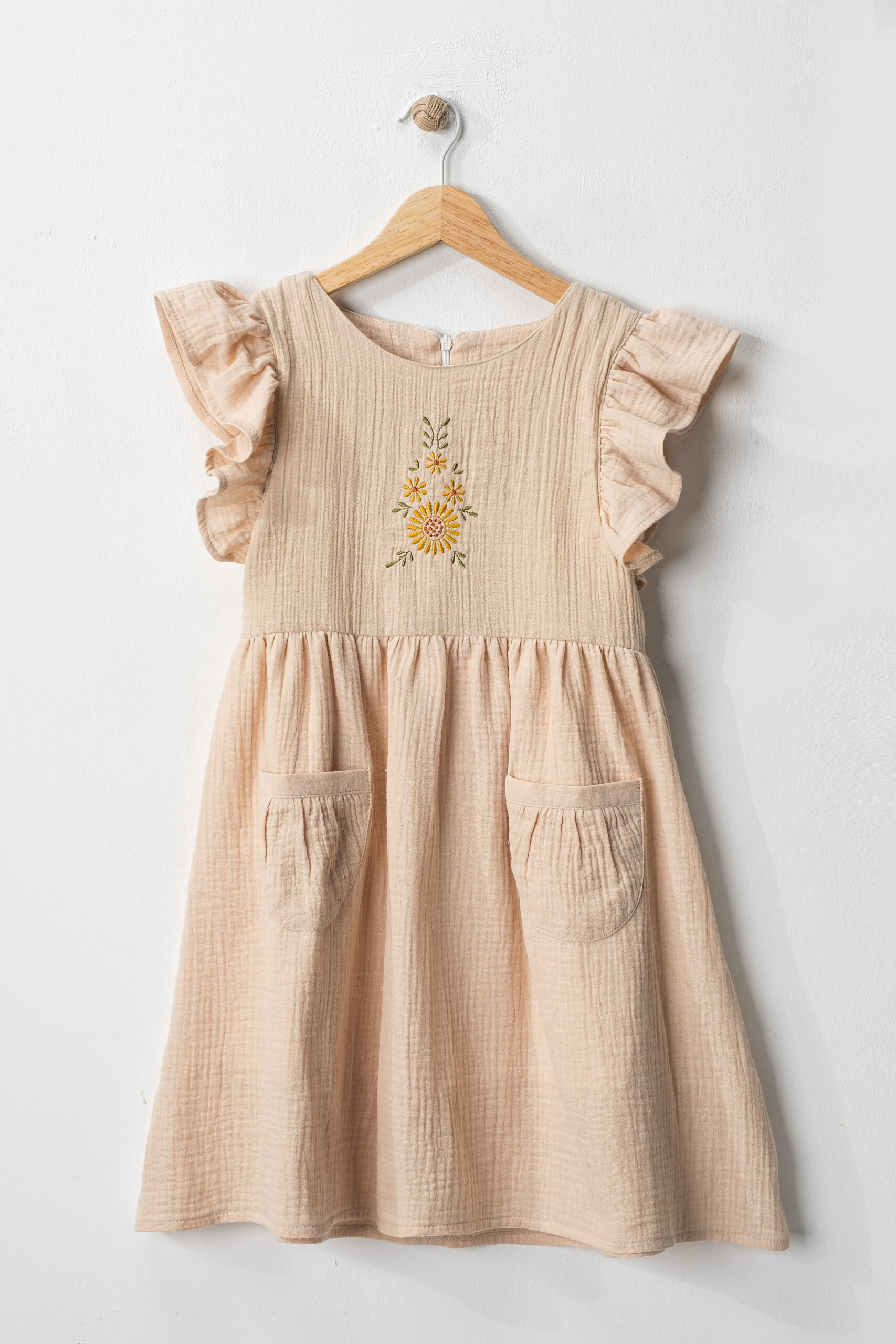 Robası Nakışlı Cepli Müslin Elbise